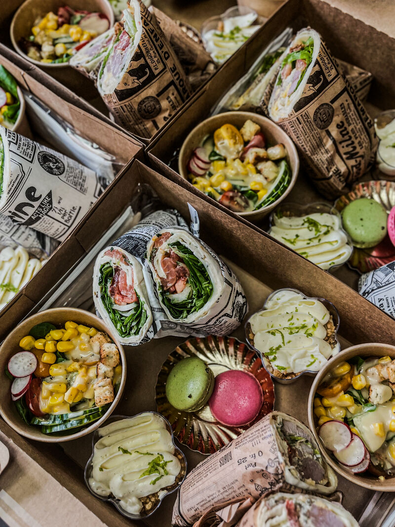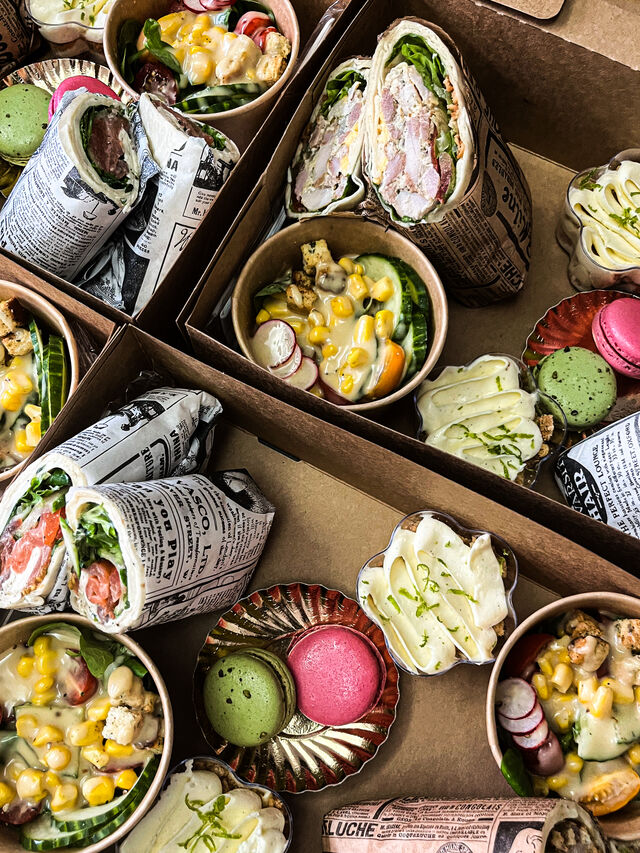 • Des plateaux traiteur prêts à poser ou des lunchs boxs pour vos réunions ou repas d’entreprise mais aussi tous vos événements privés .